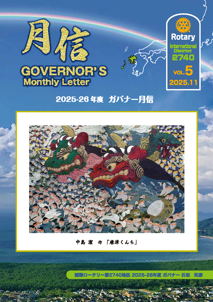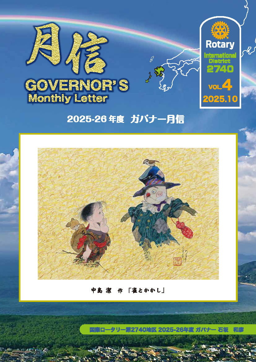 ガバナー月信 ホーム » ガバナー月信 2025-2026年度 ガバナー月信 Vol.1(7月号) Vol.2(8月号) Vol.3(9月号) Vol.4(10月号) Vol.5(11月号) 2024-2025年度 ガバナー月信 Vol.1(7月号) Vol.2(8月号) Vol.3(9月号) Vol.4(10月号) Vol.5(11月号) Vol.6(12月号) Vol.7(1月号) Vol.8(2月号) Vol.9(3月号) Vol.10(4月号) Vol.11(5月号) Vol.12(6月号) 2023-2024年度 ガバナー月信 Vol.1(7月号) Vol.2(8月号) Vol.3(9月号) Vol.4(10月号) Vol.5(11月号) Vol.6(12月号) Vol.7(1月号) Vol.8(2月号) Vol.9(3月号) Vol.10(4月号) Vol.11(5月号) Vol.12(6月号) Vol.13(総集編) 2022-2023年度 ガバナー月信 Vol.1(7月号) Vol.2(8月号) Vol.3(9月号) Vol.4(10月号) Vol.5(11月号) Vol.6(12月号) Vol.7(1月号) Vol.8(2月号) Vol.9(3月号) Vol.10(4月号) Vol.11(5月号) Vol.12(6月号) Vol.13(総集編) 2021-2022年度 ガバナー月信 Vol.1(7月号) Vol.2(8月号) Vol.3(9月号) Vol.4(10月号) Vol.5(11月号) Vol.6(12月号) Vol.7(1月号) Vol.8(2月号) Vol.9(3月号) Vol.10(4月号) Vol.11(5月号) Vol.12(6月号) Vol.13(総集編) 2020-2021年度 ガバナー月信 2020-2021Vol.1( 7月号) 2020-2021Vol.2( 8月号) 2020-2021Vol.3( 9月号) 2020-2021Vol.4( 10月号) 2020-2021Vol.5(11月号) 2020-2021Vol.6( 12月号) 2020-2021Vol.7( 1月号) 2020-2021Vol.8( 2月号) 2020-2021Vol.9( 3月号) 2020-2021Vol.10( 4月号) 2020-2021Vol.11( 5月号) 2020-2021Vol.12( 6月号) 2020-2021月信総集編 RIレート: 1ドル=154.00円 2025年11月 最新はコチラから 国際ロータリー2740地区 ガバナー事務所 〒847-0012 佐賀県唐津市大名小路1-54 唐津商工会館地下1階 TEL.0955-53-9061 FAX.0955-53-9062 執務時間 10:00~16:00(月曜日~金曜日) お問い合わせはこちら googleマップ