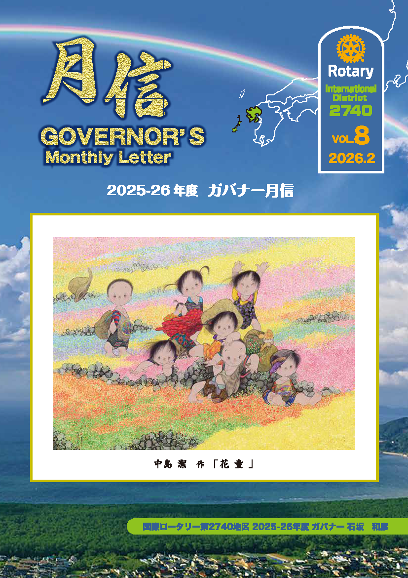 ガバナー月信 ホーム » ガバナー月信 2025-2026年度 ガバナー月信 Vol.1(7月号) Vol.2(8月号) Vol.3(9月号) Vol.4(10月号) Vol.5(11月号) Vol.6(12月号) Vol.7(1月号) Vol.8(2月号) 2024-2025年度 ガバナー月信 Vol.1(7月号) Vol.2(8月号) Vol.3(9月号) Vol.4(10月号) Vol.5(11月号) Vol.6(12月号) Vol.7(1月号) Vol.8(2月号) Vol.9(3月号) Vol.10(4月号) Vol.11(5月号) Vol.12(6月号) Vol.13(総集編) 2023-2024年度 ガバナー月信 Vol.1(7月号) Vol.2(8月号) Vol.3(9月号) Vol.4(10月号) Vol.5(11月号) Vol.6(12月号) Vol.7(1月号) Vol.8(2月号) Vol.9(3月号) Vol.10(4月号) Vol.11(5月号) Vol.12(6月号) Vol.13(総集編) 2022-2023年度 ガバナー月信 Vol.1(7月号) Vol.2(8月号) Vol.3(9月号) Vol.4(10月号) Vol.5(11月号) Vol.6(12月号) Vol.7(1月号) Vol.8(2月号) Vol.9(3月号) Vol.10(4月号) Vol.11(5月号) Vol.12(6月号) Vol.13(総集編) 2021-2022年度 ガバナー月信 Vol.1(7月号) Vol.2(8月号) Vol.3(9月号) Vol.4(10月号) Vol.5(11月号) Vol.6(12月号) Vol.7(1月号) Vol.8(2月号) Vol.9(3月号) Vol.10(4月号) Vol.11(5月号) Vol.12(6月号) Vol.13(総集編) 2020-2021年度 ガバナー月信 2020-2021Vol.1( 7月号) 2020-2021Vol.2( 8月号) 2020-2021Vol.3( 9月号) 2020-2021Vol.4( 10月号) 2020-2021Vol.5(11月号) 2020-2021Vol.6( 12月号) 2020-2021Vol.7( 1月号) 2020-2021Vol.8( 2月号) 2020-2021Vol.9( 3月号) 2020-2021Vol.10( 4月号) 2020-2021Vol.11( 5月号) 2020-2021Vol.12( 6月号) 2020-2021月信総集編 2025年手続要覧 RIレート: 1ドル=154.00円 2026年2月 最新はコチラから 国際ロータリー2740地区 ガバナー事務所 〒847-0012 佐賀県唐津市大名小路1-54 唐津商工会館地下1階 TEL.0955-53-9061 FAX.0955-53-9062 執務時間 10:00~16:00(月曜日~金曜日) お問い合わせはこちら googleマップ